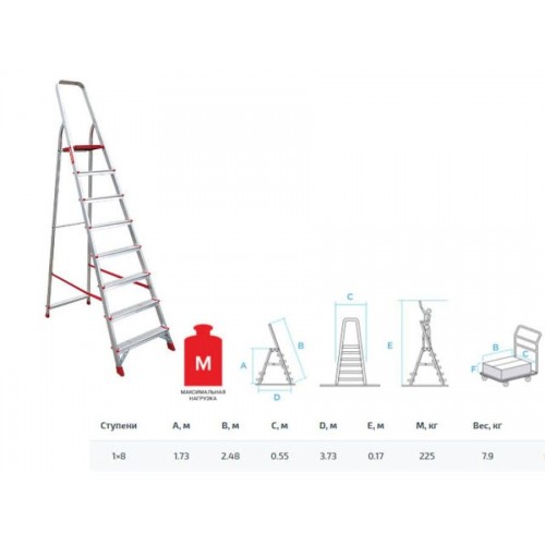 Повышенная прочность и надёжность при небольшом весе изделия Легко устанавливается и обеспечивает высокий уровень комфорта Ступени и стойки из экструдированных алюминиевых профилей увеличенного сечения Ступени глубиной 80 мм увеличенной толщины Рифлёная поверхность ступеней для безопасного подъёма и спуска Прочное крепление ступеней к боковинам заклёпками для более высокой устойчивости конструкции Рифлёная безопасная площадка из оцинкованной стали с порошковой покраской Дуга безопасности 600 мм Прочные страховочные ремни Опорные наконечники из прочного пластика для устойчивого положения Компактность при хранении и транспортировке Практичность и внимание к каждой детали гарантируют безопасность работы на любой высоте