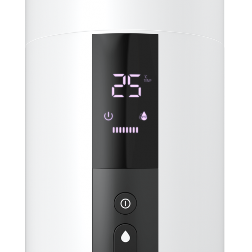 Электронное управление и информативный LED-дисплей отражают индикацию основных режимов работы, таймера, текущей температуры, установленной и текущей влажности в помещении. А уникальная панель управления превращается в элегантный и удобный пульт дистанционного управления, который крепится к корпусу прибора.