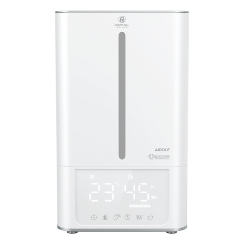 AIROLE (А́йроле) от ROYAL CLIMA — это многофункциональное решение для увлажнения воздуха в помещении. Ультразвуковой увлажнитель AIROLE обладает верхним заливом, благодаря которому наполнять резервуар водой стало комфортнее, без брызг и шума. AIROLE включает в себя 3 функции: интенсивное увлажнение до 300 мл/час, измерение температуры воздуха в помещении и измерение уровня влажности. Чтобы выбрать и установить желаемый уровень влажности, воспользуйтесь электронной панелью управления.