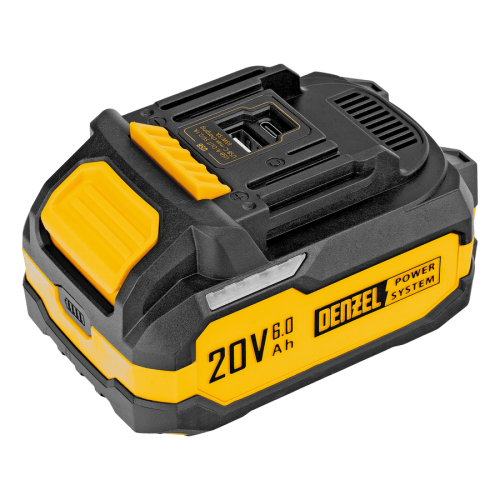 Батарея Li-Ion Denzel BH-20-6.0 28446 номинальным напряжением 20 В и емкостью 6,0 А·ч обеспечивает работоспособность аккумуляторного инструмента. Подходит для всех инструментов единой платформы Denzel Power System 20V. Также может использоваться в качестве зарядного устройства для мобильных устройств, поддерживающих зарядку от разъемов USB 3.0 (USB-A) и USB Type-C.
