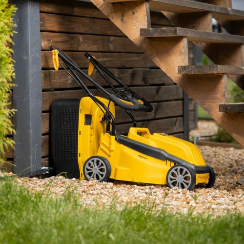 Комплектация Газонокосилка с установленным ножом - 1 шт Травосборник - 1 шт Cтойка нижняя - 1 шт Стойка верхняя (с рукояткой) - 1 шт Фиксатор кабеля питания - 1 шт Фиксатор удлинителя - 1шт Набор крепежа - 1 шт Руководство по эксплуатации с гарантийным талоном - 1 шт Транспортировочные колеса - 4шт