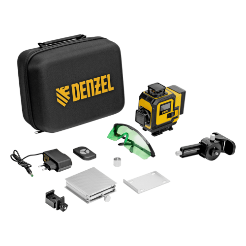 Лазерный уровень мультипризменный DENZEL DLV-360-4C, 30 м, зеленый луч, Li-Ion 2,4 Aч, кейс
