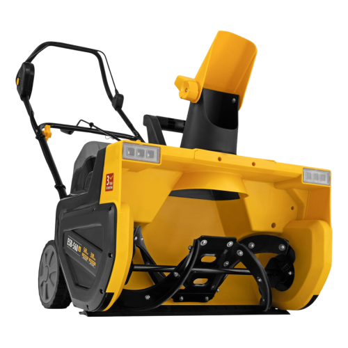 - Полная комплектация — снегоуборщик поставляется с 2 аккумуляторами, зарядным устройством и скребком для очистки желоба.