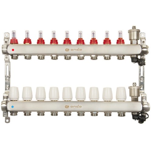 Группа коллекторная ONDO нерж сталь 9 вых. с автомат. воздухоотвод., расход. и термостат. клапанами