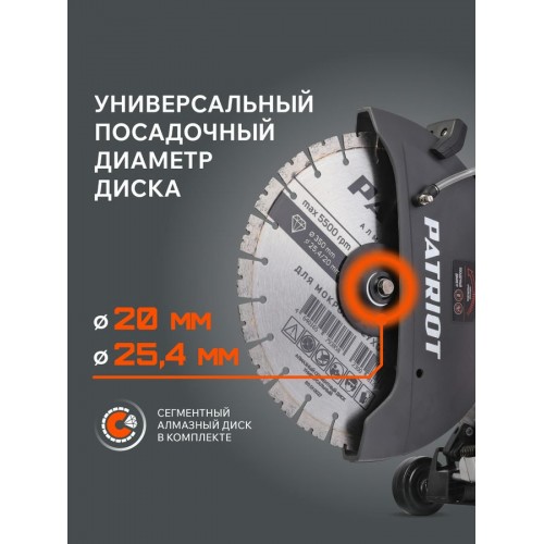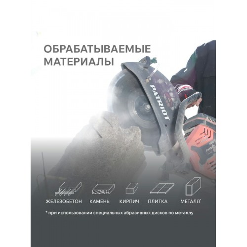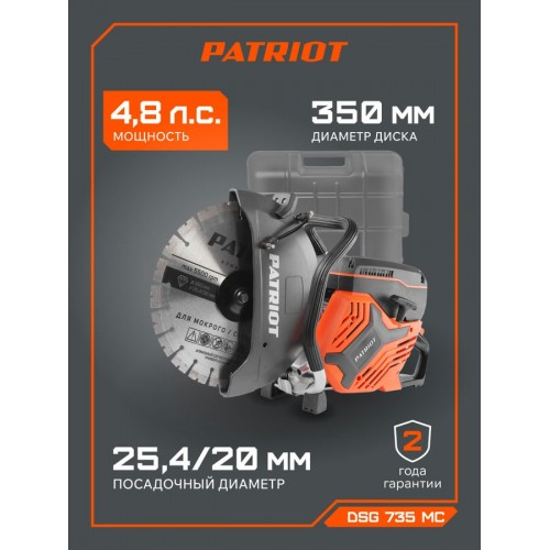 Бензорез PATRIOT DSG 735MС применяется для сухой и мокрой резки различных материалов. В зависимости от установленной оснастки, можно использовать бензорез по бетону, кирпичу, бордюрам, асфальту и камню. Бензорез по металлу можно использовать со специальными абразивными дисками. Универсальный посадочный диаметр для удобного выбора режущего диска. Диаметр диска 350 мм обеспечивает глубину реза до 125 мм. Удобный кейс для транспортировки в комплекте.