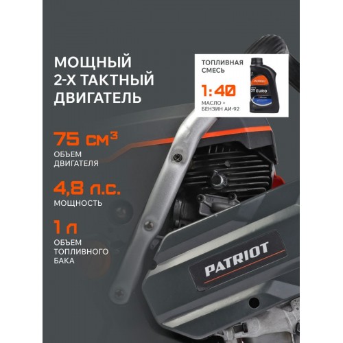 | Тип топлива | смесь 1:40 (масло PATRIOT G-Motion + бензин АИ-92) |