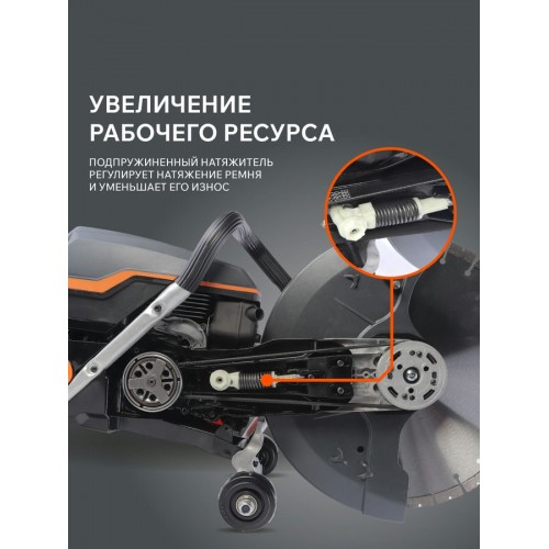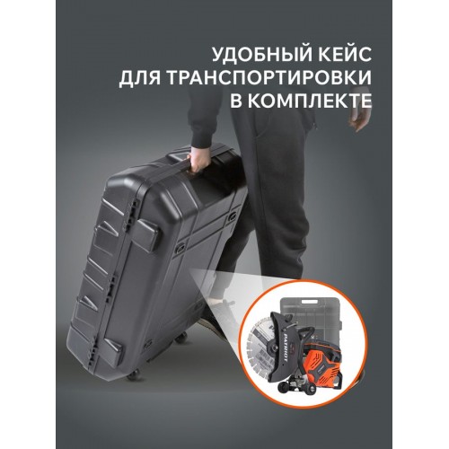 Для выполнения длинных резов в бетоне или асфальте на больших площадях предусмотрена установка на направляющую тележку (приобретается отдельно).