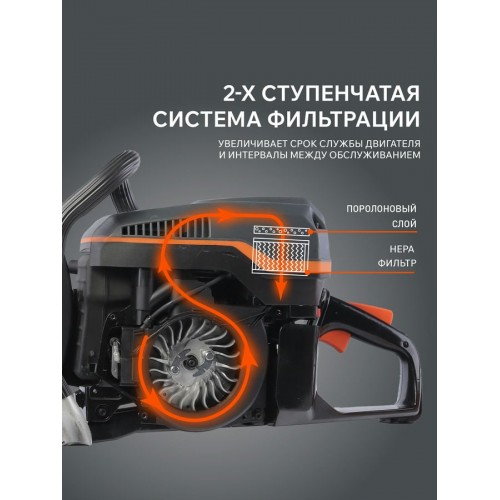 Двухтактный двигатель мощностью 4,8 л.с. (3,5 кВт) обеспечивает высокую производительность.