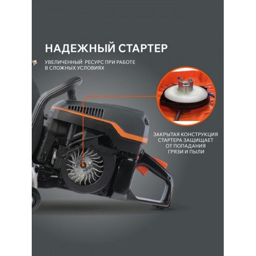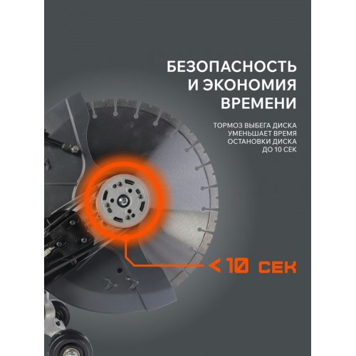 Тормоз выбега диска останавливает диск за <10 сек после сброса газа или остановки двигателя. Специальный кожух защищает оператора от осколков и пыли.