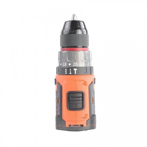 Оснащен бесщеточным двигателем, который позволяет эффективно использовать энергию и получать большую мощность. Индикатор заряда позволяет контролировать состояние устройства. Функция быстрой зарядки экономит время. Встроенная защита от перегрузок. Расположенная на корпусе подсветка делает возможной работу при плохом освещении рабочей зоны. Прорезиненная рукоятка с нескользящим покрытием и накладками на корпусе ExtraGrip для удобного хвата. Быстрозажимной патрон с блокировкой шпинделя. Реверс делает замену оснастки легче.
