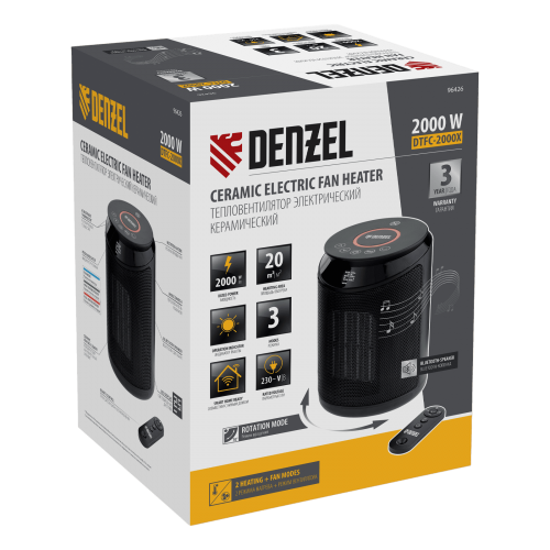 Тепловентилятор керамический DENZEL DTFC-2000X, 2 кВт, wi-fi, пульт, динамик, вращение, 3 реж.