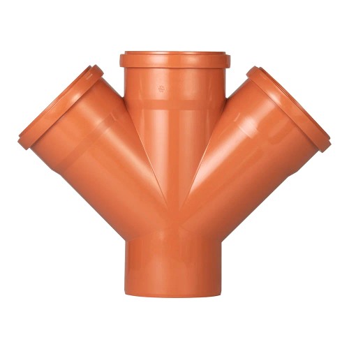 Крестовина Политэк Пайп одноплоскостная 110х110х110/45 для наружной канализации, рыжая (1/16)