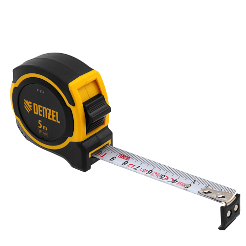 Рулетка DENZEL 5м х 19мм, двухкомп. корпус, магнитный обрезиненный зацеп