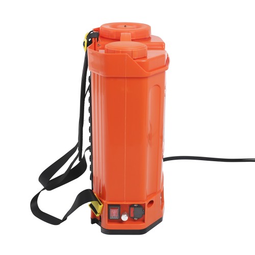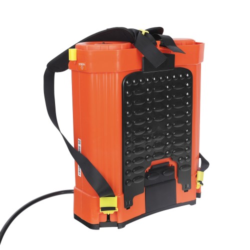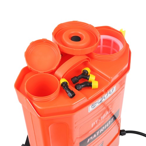 Аккумуляторный садовый опрыскиватель PT-16AC оборудован 16-литровым баком для жидкости. Применяется для работ в саду - обработки удобрениями или бережного орошения растений. Функционирует от свинцово-кислотной батареи 12 В, 8 А*ч. В комплект входят насадки для равномерного распыления раствора. Предусмотрено ременное крепление для удобного ношения агрегата на спине.