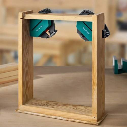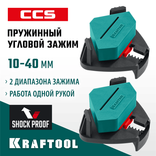 Струбцина угловая PCC-9 KRAFTOOL 32205, предназначена для фиксации деревянных, металлических и стеклянных деталей. Комплект профессиональных инструментов с возможностью зажима в двух различных диапазонах. Удобная система фиксации одной рукой - вторая рука остаётся свободной для работы. Мягкие уплотнители на зажимах бережно удержат хрупкие детали, не повреждая их. Эргономичный дизайн. Корпус струбцины выполнен из ударопрочного пластика. Материал пружины - высокоуглеродистая сталь.