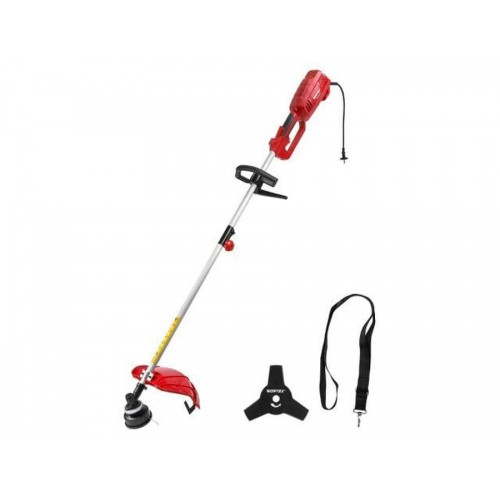 Электрический триммер предназначен для использования на приусадебных участках средней площади. Оснащен эргономичной прорезиненной рукояткой и удобным снятием блокировки пуска. Предусмотрена возможность эксплуатации как с леской, так и с трехлопастным ножом. Производительность кошения составит примерно 3 сотки в час. Пластиковые детали изготовлены из ударопрочного материала. Номинальная мощность, Вт: 1300; Параметры сети, В Гц: 23050; Тип электродвигателя: однофазный, коллекторный; Частота вращения на холостом ходу, мин-1: 8100; Тип косильной головки: полуавтоматическая; Толщина лески, мм: 2,0; Ширина рабочей зоны (леска), мм: 370; Ширина рабочей зоны (нож), мм: 255; Тип штанги: прямая, разборная; Плавный пуск: нет; Масса нетто, кг: 5,3; Комплект поставки: - наплечный ремень; - нож; - косильная головка (установлена); - паспорт; Гарантийный срок - 2 года;