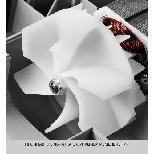• Перемалывание поступающего в мешок мусора с коэффициентом измельчения 10:1 уменьшает его объем и превращает в полезную мульчу
