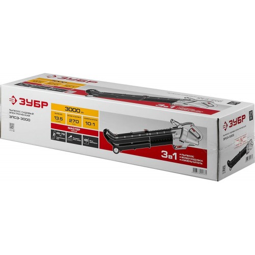 ЗУБР 3000 Вт, 75 м/с, 810 м3/ч, пылесос-воздуходувка садовый электрический ЗПСЭ-3000