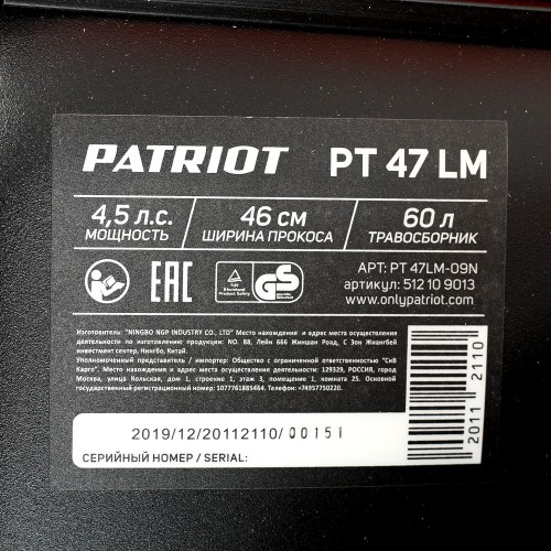 Газонокосилка бензиновая PATRIOT PT 47 LM снят с производства