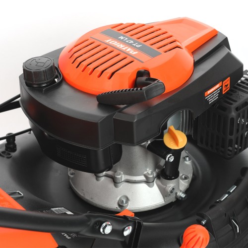 Мощная бензиновая газонокосилка РТ 47 LM с изменяемой высотой скашивания предназначена для срезания и сбора травы на ровной площади малых и средних приусадебных участках. Возможна работа в трех режимах: сбор травы в травосборник, боковой выброс травы, режим мульчирования. Большие задние колеса придают косилке лучшую устойчивость и стабильность высоты кошения. Газонокосилку отличает легкий запуск, высокая производительность и простота в обслуживании. Складная рукоятка, съёмный травосборник и компактный размер позволяют легко транспортировать и хранить газонокосилку. Корпус косилки оснащен штуцером для подключения шланга - для быстрой очистки внутренней части деки после работы. В комплект поставки входит приспособление для мульчирования.