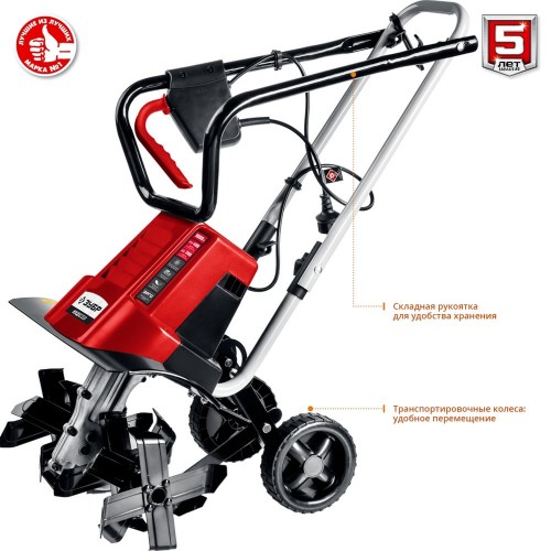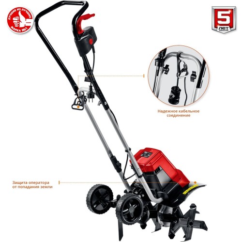 Манёвренный культиватор с синхронным двигателем мощностью 1800 Вт используется для рыхления и культивации почвы на небольшом участках, парниках и теплицах. Оснащен металлическими фрезами с шириной захвата 40 см и обрабатывает почву на глубину до 20 см.