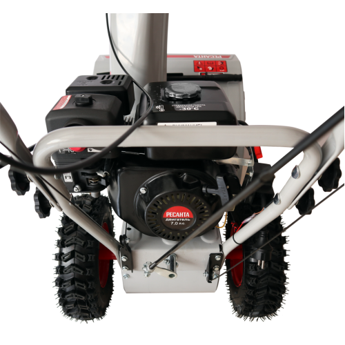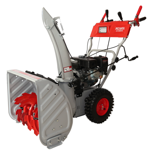 Рабочая система снегоуборщика Ресанта представляет собой снегозаборный желоб со шнеком, а также вентилятор в форме крыльчатки и желоб для выброса снега. Агрегат приводится в действие четырехтактным поршневым одноцилиндровым бензиновым двигателем внутреннего сгорания с воздушным охлаждением.