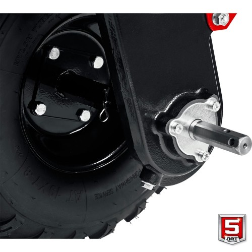 • Кронштейн для крепления навесного оборудования (диаметр 30 мм) и шкив отбора мощности позволяют использовать широкую гамму навесного оборудования: снегоуборщик, щетку, роторную косилку