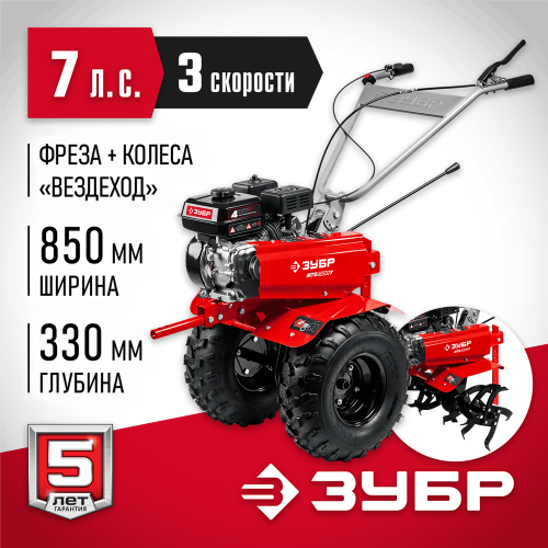 ЗУБР 7 л.с., 212 см3, мотоблок бензиновый с увеличенными колесами МТБ-300 У Мастер