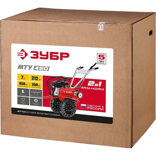 ЗУБР 7 л.с., 212 см3, мотоблок бензиновый усиленный МТУ-450 Мастер