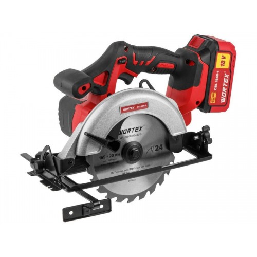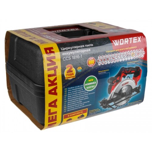 Аккум. циркулярная пила WORTEX CCS 1816-1 в чем. ALL1 МЕГА АКЦИЯ 18 В, 165 мм, до 55 мм, 4 А*ч (18.0 В, АКБ 1х4 А*ч, ЗУ 2А, 165х20 мм, до 55 мм)