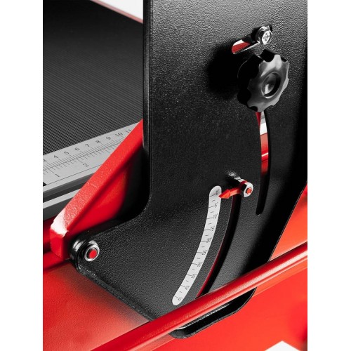 - Точная установка разрезаемой плитки благодаря фиксирующему упору со шкалой