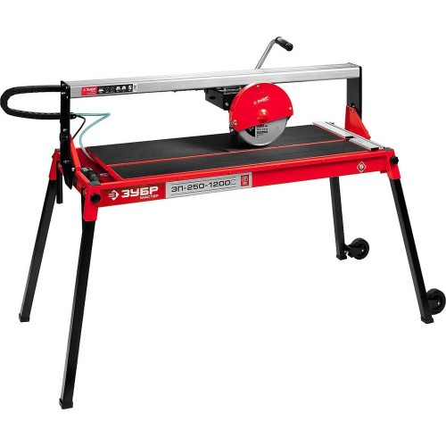 Плиткорез электрический ЗУБР ЭП-250-1200С, предназначен для точной резки всех видов плитки. Подвижная головка диска имеет профессиональную конструкцию подшипникого узла, что обеспечивает высокую точность линии реза и мягкий ход каретки. Подвижная головка диска способствует большей безопасности и удобству в работе. Профессиональная конструкция подшипникового узла гарантирует плавное передвижение каретки и высокую точность реза. Возможность пиления на заданную глубину. Точная установка разрезаемой плитки благодаря фиксирующему упору со шкалой. Водяное охлаждение предотвращает порчу распиливаемого материала и исключает образование вредной пыли при работе. Возможность прямого пиления под углом от 0 до 45°, косого в пределах до 90°, а также комбинированного. Не требующий обслуживания асинхронный двигатель прост в эксплуатации. Для безопасной работы предусмотрены защитное заземление и электромагнитный выключатель.