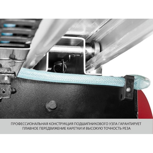 - Профессиональная конструкция подшипникового узла гарантирует плавное передвижение каретки и высокую точность реза