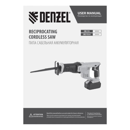 Пила сабельная аккумуляторная DENZEL CRC-115, 18В Li-Ion