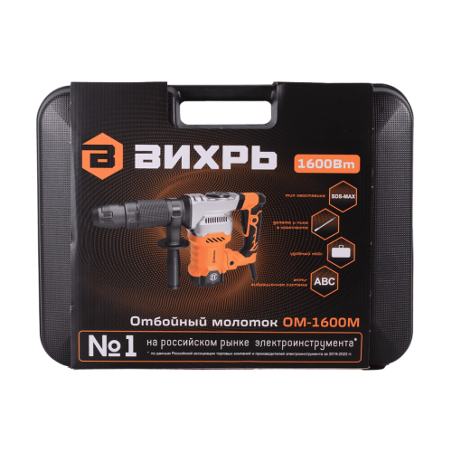 Отбойный молоток модели Вихрь ОМ-1600М – инструмент, который отлично справляется с разрушением твердых материалов. Его мощность равна 1600 Вт, а сила удара составляет 25 Дж. Частота ударов - 4100 в минуту. Может разбивать кирпичные сооружения, бетонные или асфальтированные поверхности, камень и другие материалы.