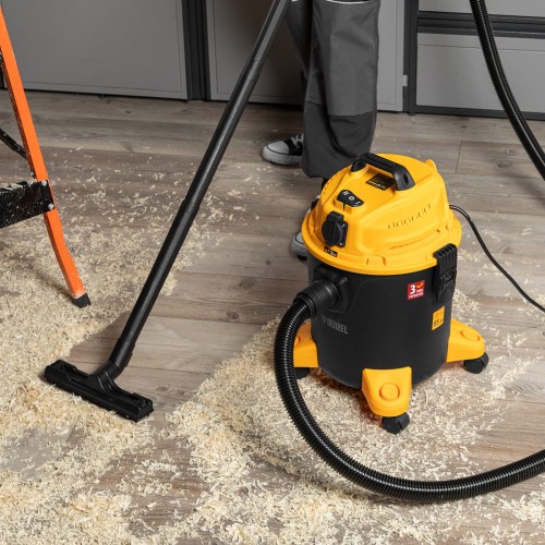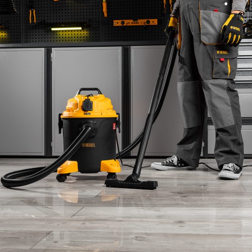Строительный пылесос Denzel LVC20 28292 мощностью 1400 Вт, со шлангом длиной 3 м и баком объемом 20 л, оснащенный розеткой с автосинхронизацией, предназначен для уборки помещений: удаления бетонной, кирпичной пыли, а также для сбора воды. Высокоэффективный HEPA-фильтр задерживает мельчайшие загрязняющие частицы, предотвращая их попадание обратно в воздух. Возможность подключения электроинструмента обеспечивает удаление стружки, опилок, шлама, образующихся в процессе сверления, пиления, фрезерования. Пылесос пригодится для поддержания чистоты во время проведения строительных и ремонтных работ, будет полезен на складе, производстве и в гараже.