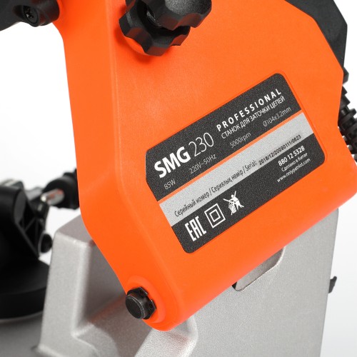 Мини станок предназначен для заточки пильных цепей любых типоразмеров. Высококачественная сборка, литая станина, градуированная шкала, защитный экран и большая ручка – все эти атрибуты делают SMG 230 прекрасным помощником для небольших мастерских.