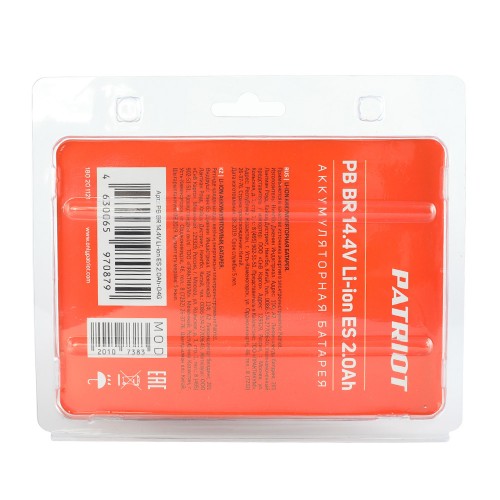 Батарея аккумуляторная Li-ion для шуруповертов Patriot. Емкость аккумулятора: 2,0 Ач, напряжение: 14,4В.