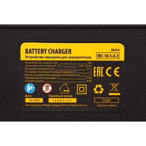 Универсальное зарядное устройство Denzel IBC-18-3.0-2 28454 подходит ко всем Li-Ion аккумуляторам на платформе Denzel 18 В. Быстрое зарядное устройство обеспечивает высокую скорость зарядки сразу двух батарей и гарантирует превосходную работу вашего инструмента.