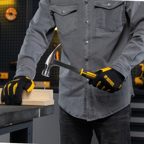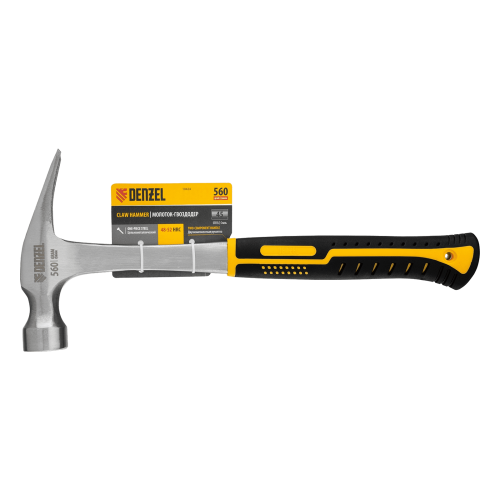 Молоток-гвоздодер DENZEL 560 г, цельнометаллический, двухкомпонентная рукоятка