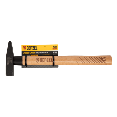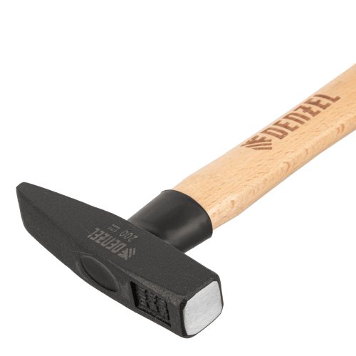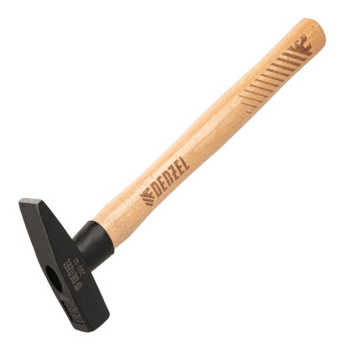 Молоток слесарный DENZEL 200 г, кованый квадратный боек, буковая рукоятка