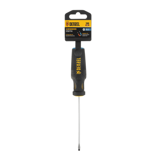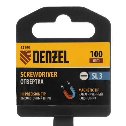 Отвертка DENZEL SL3х100 мм, CrV, трехкомпонентная рукоятка
