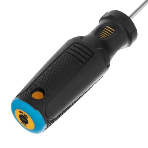 Отвертка SL3 х 100 мм Denzel 12190 из стали CrV, с трехкомпонентной рукояткой, используется для монтажа и демонтажа винтов и саморезов с прямым шлицем Slotted. Намагниченный шлиц крепко фиксируется в головке крепежа. Отвертка выдерживает интенсивное применение и предназначена для выполнения профессиональных ремонтных и монтажных работ.