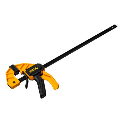 Струбцина F-образная быстрозажимная Denzel 20502 с пошаговым зажимом шириной 300 мм и глубиной 55 мм, с усиленным нейлоновым корпусом, позволяет прочно зафиксировать детали для их обработки, склеивания и выполнения других задач. Сила сжатия составляет 680 Н. Струбцина подходит для бытового и профессионального применения.