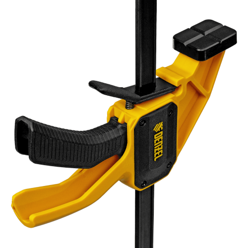 • Комфортное использование — струбцина весит всего 360 г, обрезиненная кнопка фиксации обеспечивает удобный захват.