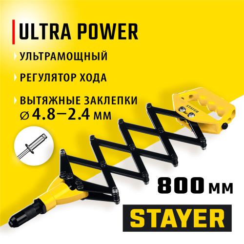 Профессиональный рычажно-складной заклепочник Stayer серии PROFESSIONAL облегчает работу в труднодоступных местах, а усиленная конструкция корпуса значительно увеличивает срок службы инструмента.
