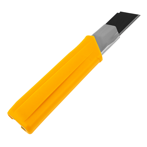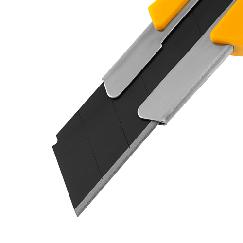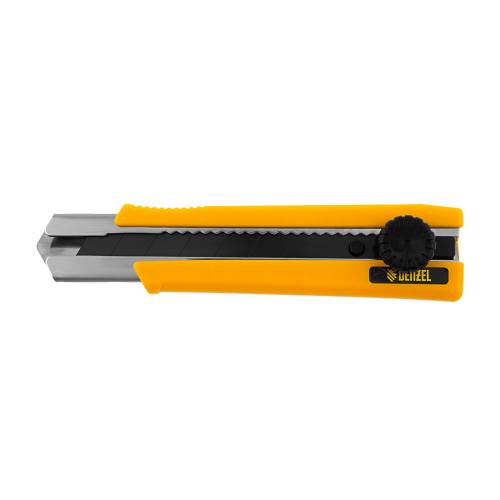 Нож DENZEL 25 мм, сменное лезвие, SK4, корпус из TPR, метал. направляющая, винтовой фиксатор