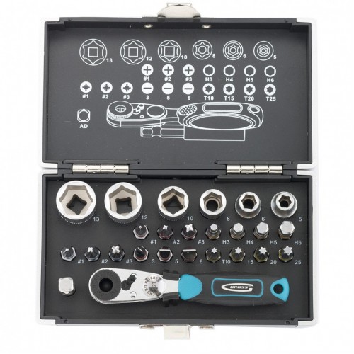 Набор бит и торцевых головок торговой марки GROSS предназначен для монтажа/демонтажа резьбовых соединений при проведении слесарно-монтажных работ.