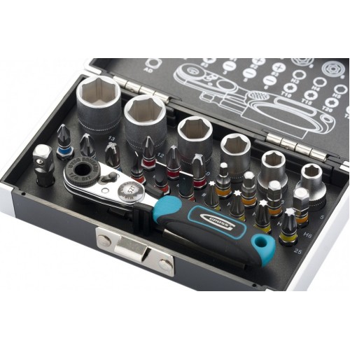 В наборе 17 бит, изготовленных из высококачественной инструментальной стали S2, со шлицами PH1, PH2, PH3, PZ1, PZ2, PZ3, T10, T15, T20, T25, T27, T30, T40, H3, H4, H5 и H6, которые являются наиболее востребованными при проведении различных работ.