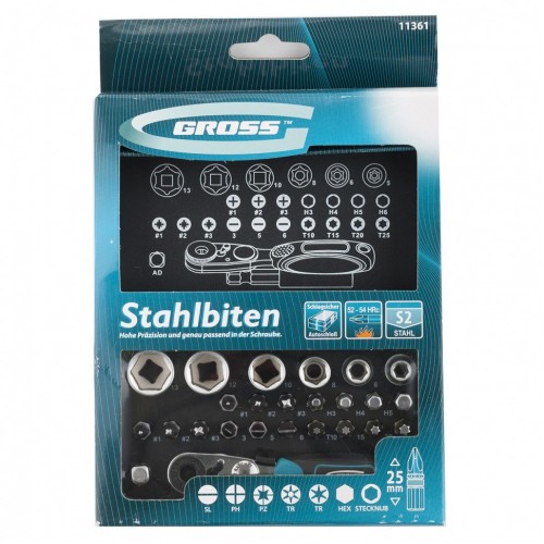 Набор бит и головок торцевых, 1/4, магнитный адаптер, сталь S2 пластиковый кейс, 26 предметов Gross, ( 11361 )